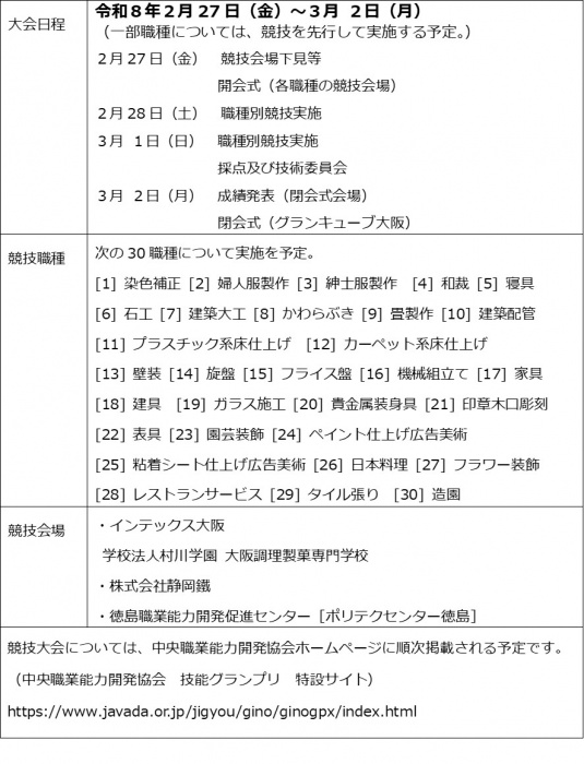 第33回技能グランプリは、大阪府で開催することが決定しました!